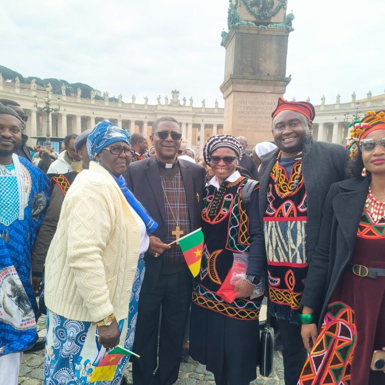Oggi, durante l'Angelus, si è avuta una significativa rappresentanza della comunità camerunense a Roma, guidata dall'Arcivescovo di Bamenda, Mons. Nkea Andrew. Insieme a lui erano presenti il nuovo vescovo ausiliario di Bamenda, Mons. John Berinyuy, il presidente del CRG, Rev. Peter T. Fonyuy, e il presidente di Esca, Mr. Azane Vitus, insieme ad altri membri di Esca e della comunità cristiana. Questo evento ha rappresentato un momento di unità e spiritualità, evidenziando l'importanza delle tradizioni camerunesi nel contesto della vita ecclesiale a Roma.