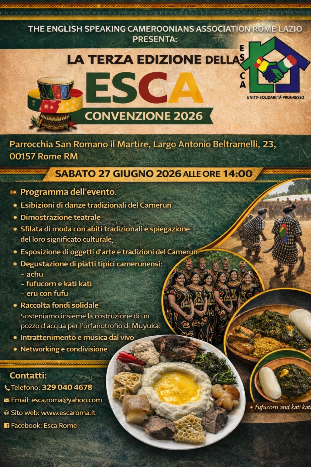 Il 27 giugno alle ore 14:00, presso il teatro della Parrocchia San Romano Martire a Pietralata (Roma), si terrà l’attesissima ESCA Convention 2026, un evento straordinario interamente dedicato alla promozione e alla valorizzazione della cultura.